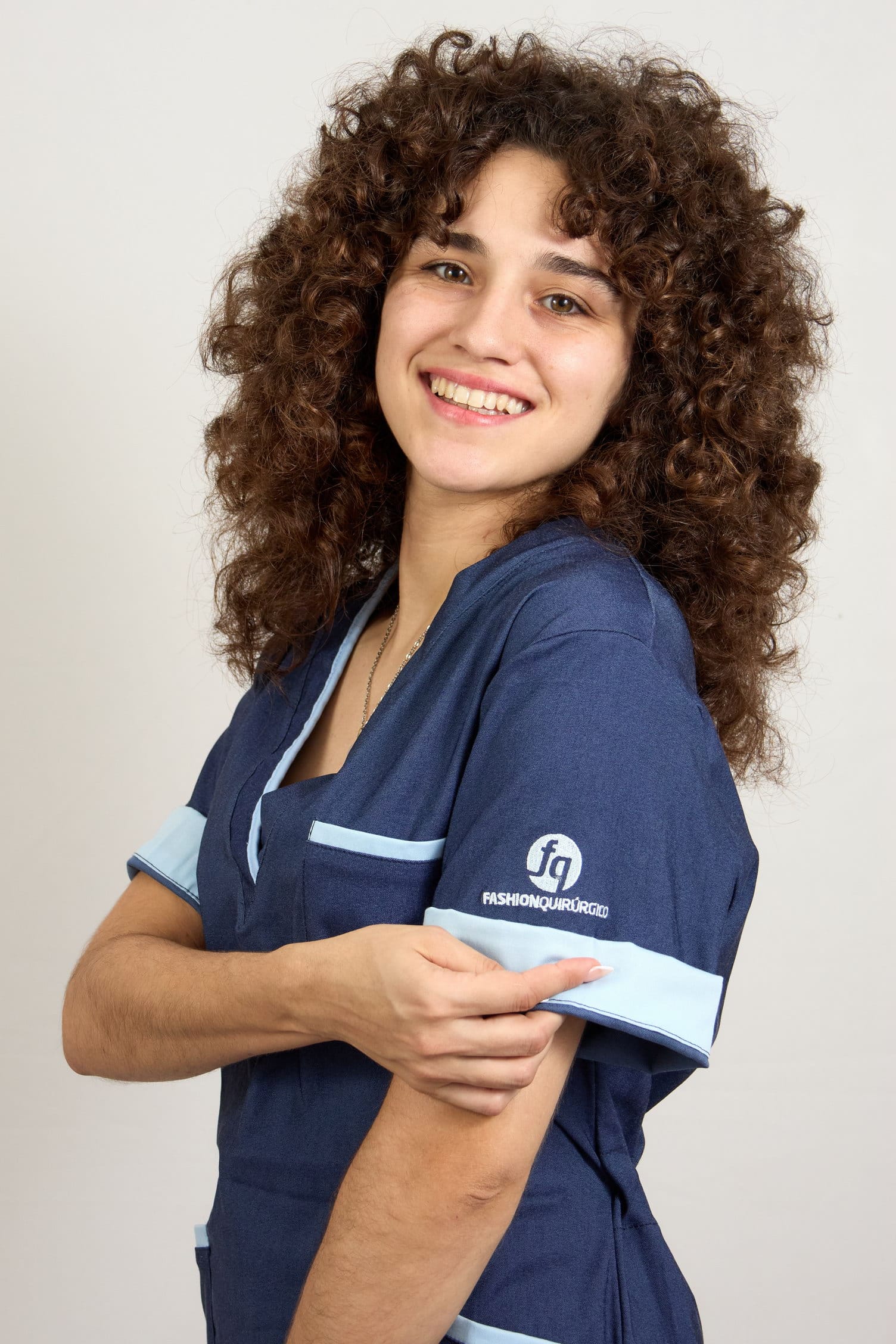 Ambo cuello V confeccionado en  tela Magic flex Simil Jean , tela flexible calidad premium para mayor comodidad. Con vivo celeste bebé