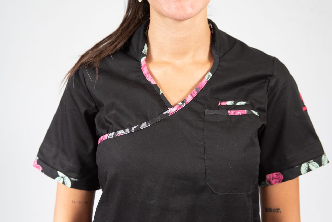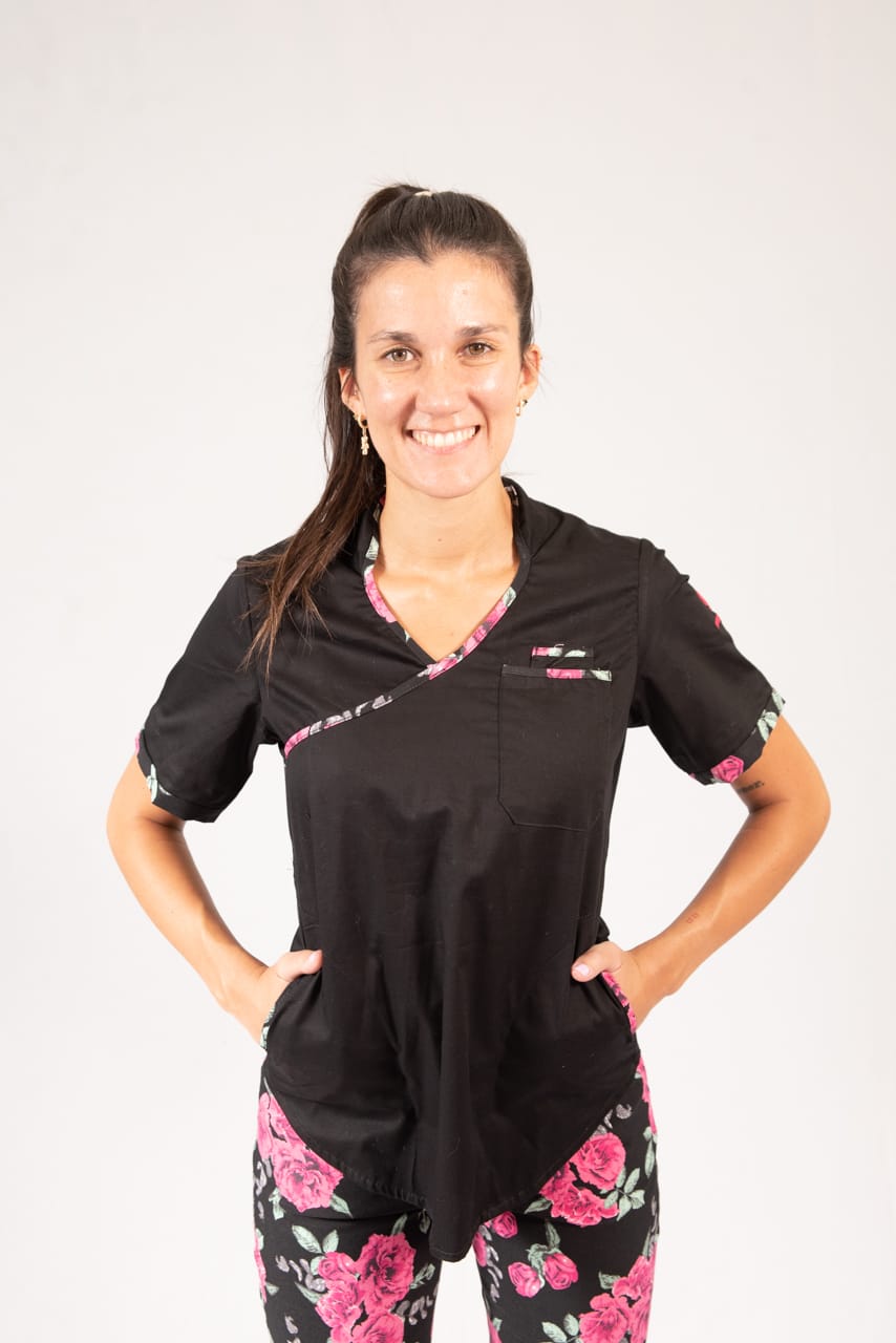 Pantalón semi recto estampado fondo Negro con flores fucsias Confeccionado con tela Magic flex, la tela que te permite mayor amplitud en tus movimientos para tus jornadas laborales, para que sientas 100% libertad. Probalos una vez y experimenta lo que es confort absoluto al trabajar!