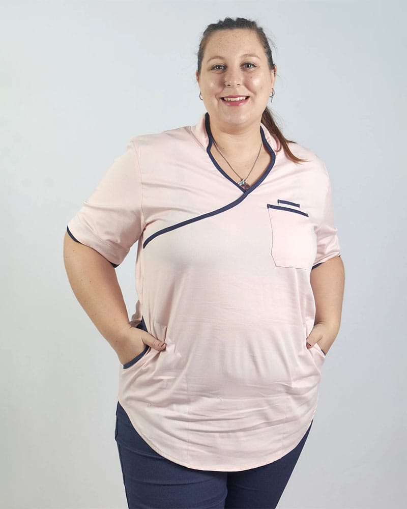 Chaqueta Rosa bebe cuello Mao con dos bolsillos delanteros y uno superior con sobrebolsillo para tu bolígrafo